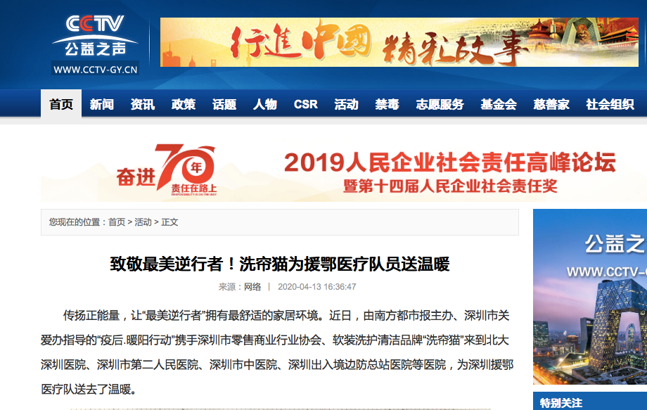 洗帘猫软装清洗品牌的心意送出去后不久,就被CCTV表扬啦。